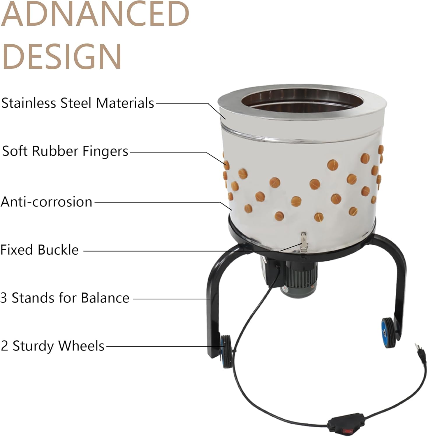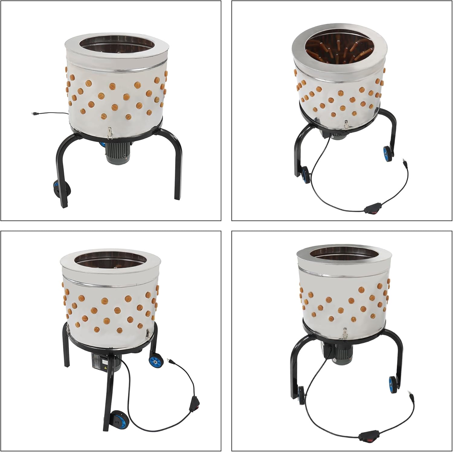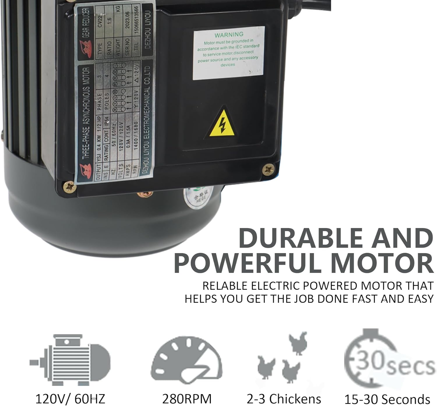 This plucking machine de-Feather is made of stainless steel durable material with rubber soft fingers, with 280RPM speed to complete plucking efficiently.