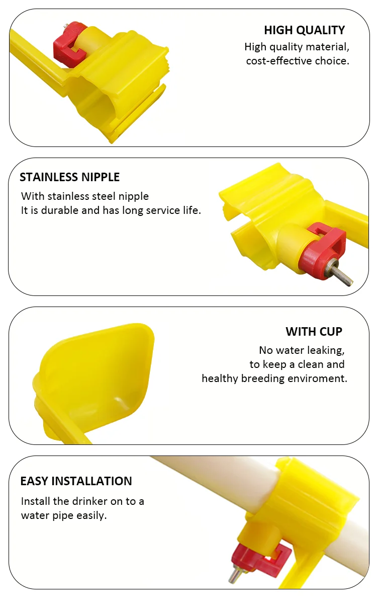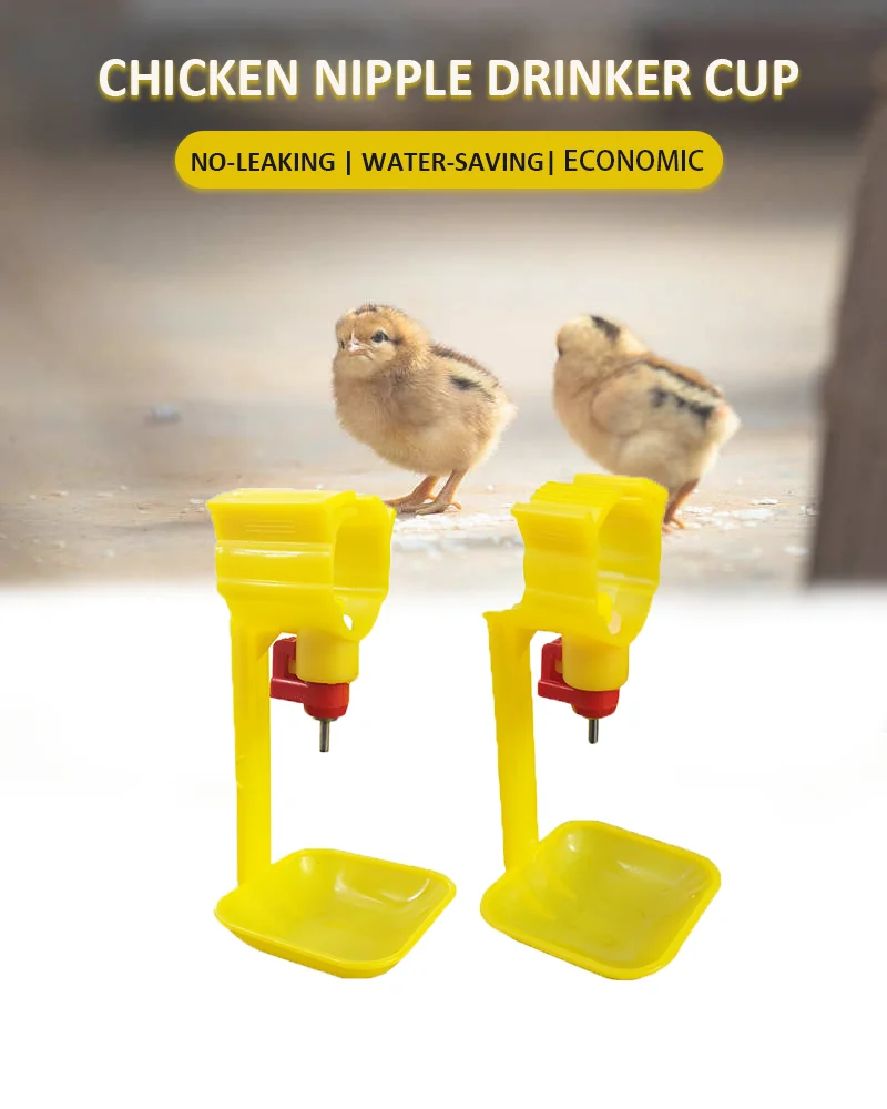 Poultry Chicken Duck Hanging Drinking Water Nipple Drinker Feeder With Cup New