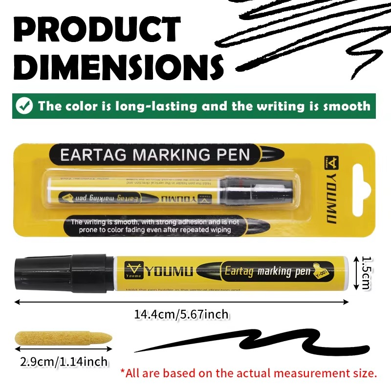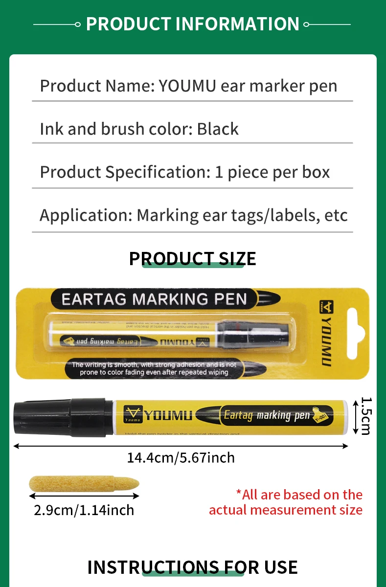 YOUMU Black Ink Pen for Mark Animal Identification Mark Pens Livestock Equipment Ear Tag Marker Pen