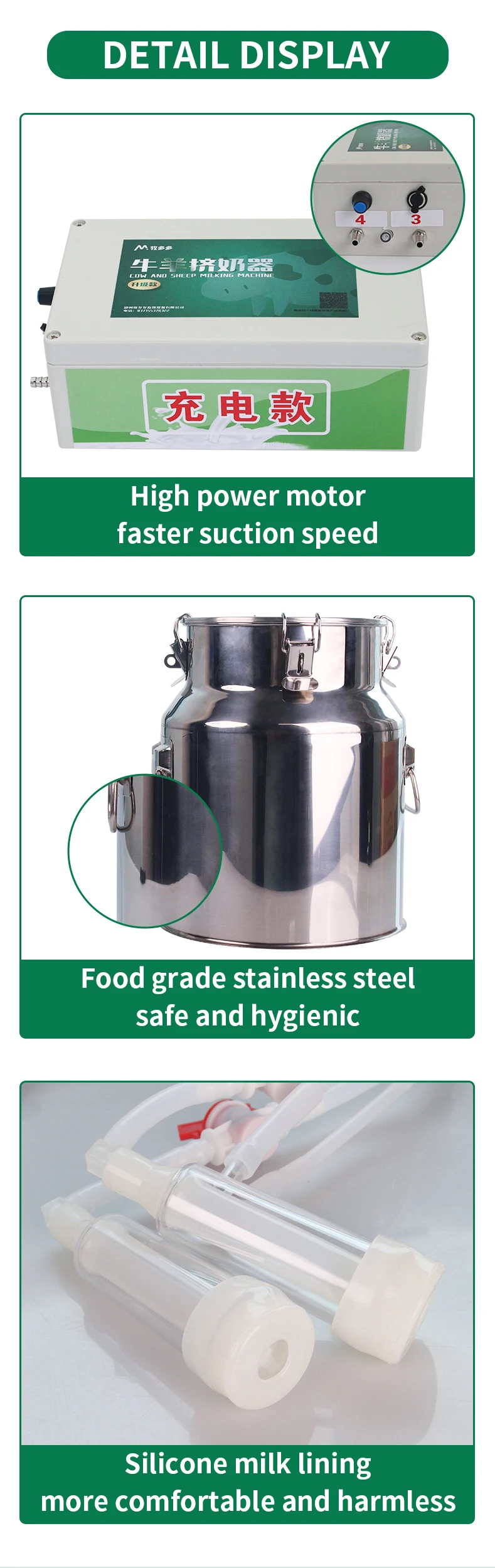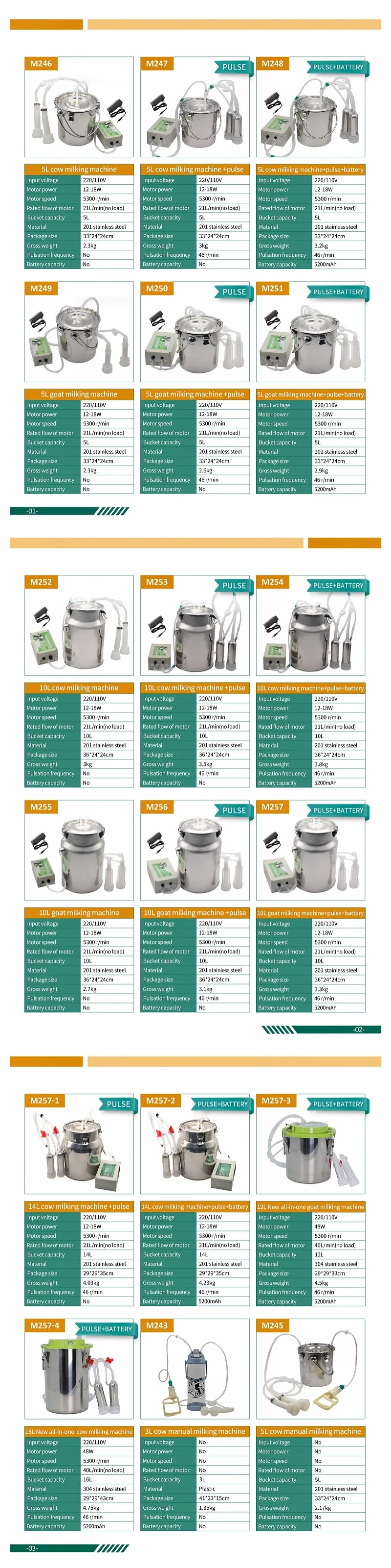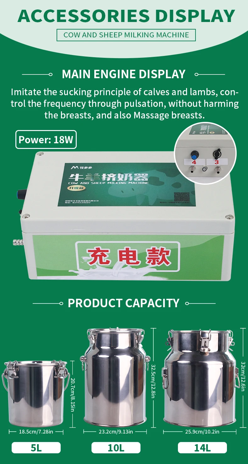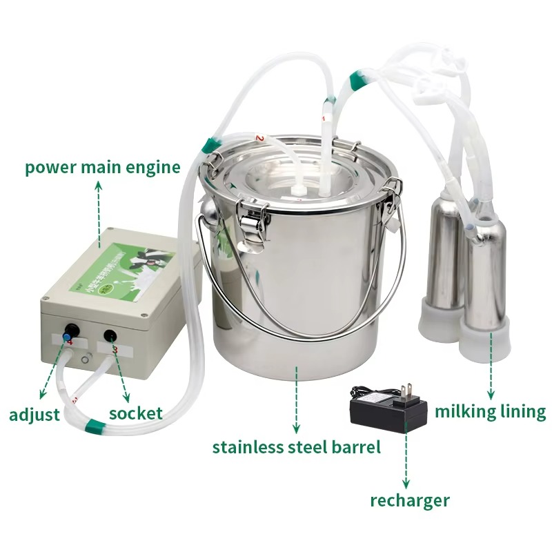 14L Cow and Sheep Milking Machine Portable Adjustable Speed Stainless Steel Pulse Milking Machine for Cow Cattle