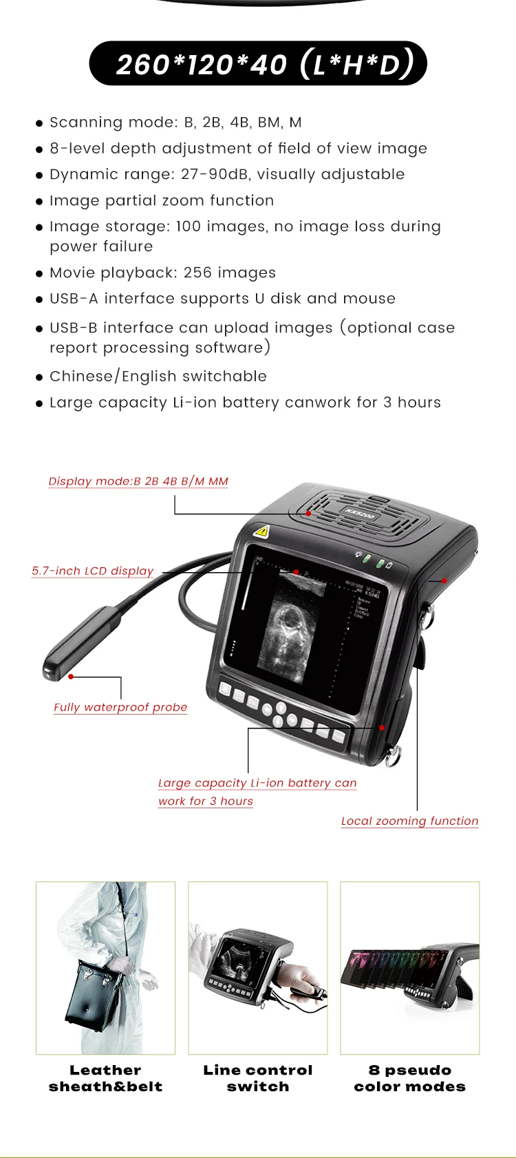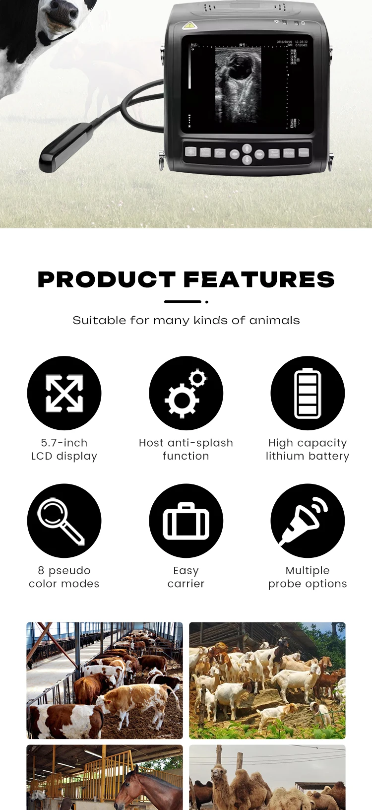 GF-KX5200 High Quality Veterinary Ultrasound Scanner 5.7 Inch Full Digital B-Mode Portable Rectal Probe for Cow